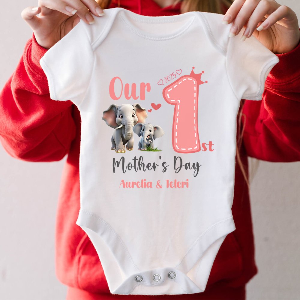 This T-shirt and baby bodysuit are themed on a warm elephant family. The quote "1st Mother's Day" shows a strong family atmosphere. The mother and baby elephants are leaning on each other, adding a touch of romance and tenderness.