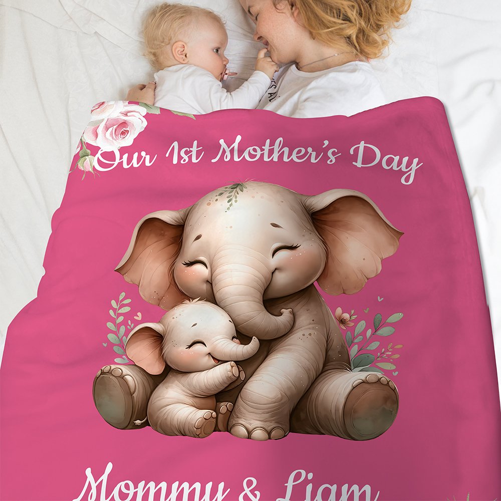 Personalized Cute Elephant Rabbit Animal Design Soft Throw Blanket with Name and Year 1st Mother's Day Home Decor Birthday Gift for Kid Mom