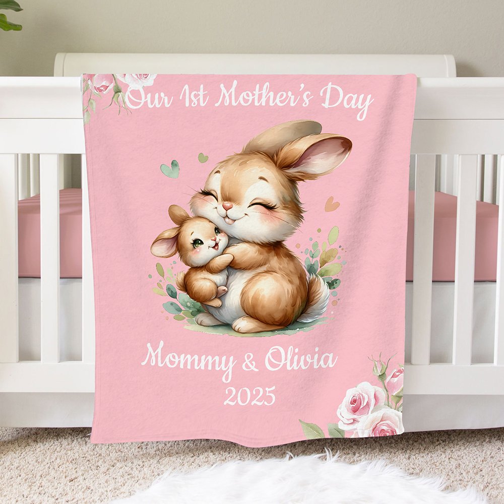 This blanket is themed "Our 1st Mother's Day" and features cute animal parent-child patterns such as rabbits, giraffes, elephants, etc., which add a touch of childishness and affection. You can customize the names of the mother and baby and the year of birth of the baby according to your needs, making this blanket a unique souvenir. 35 different animal patterns enrich your choices.