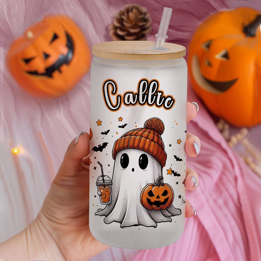 This frosted glass cup is themed with cute little ghosts, which is full of cuteness. There are three fonts to choose from, and you can also customize the name, making this cup a unique and eye-catching presence for Halloween.