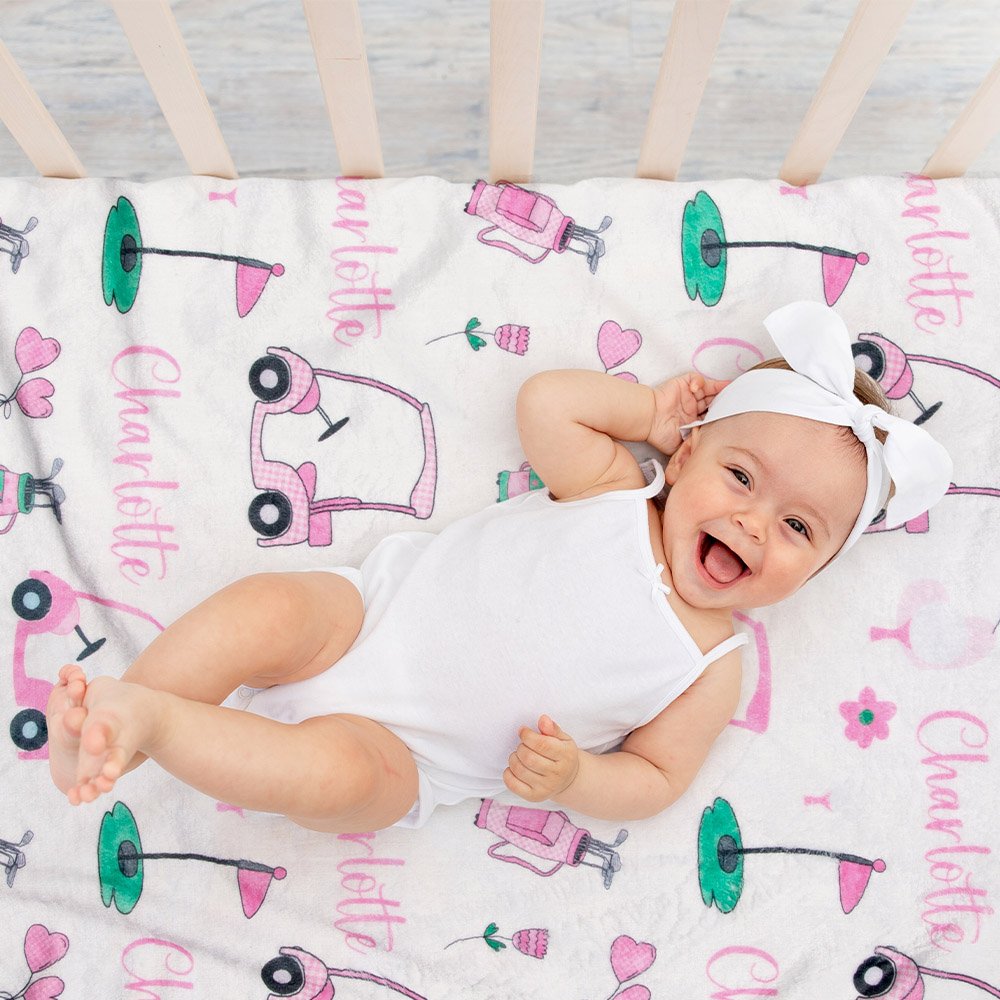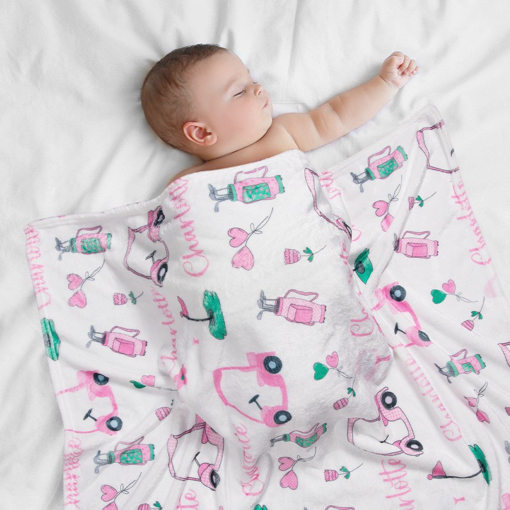This pink golf-themed baby blanket is the perfect gift for children on birthdays, baby showers, anniversaries, or during the holidays. Give it to them, and they will have a happy smile on their faces.