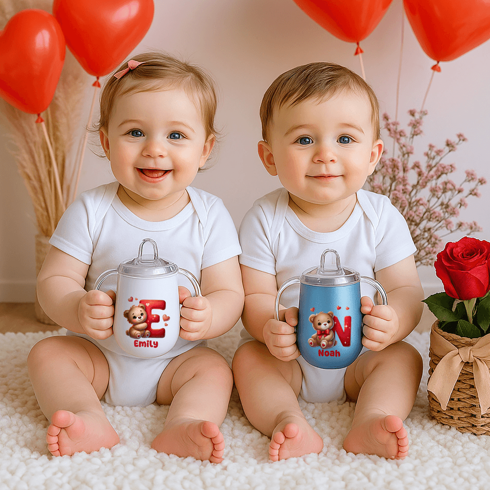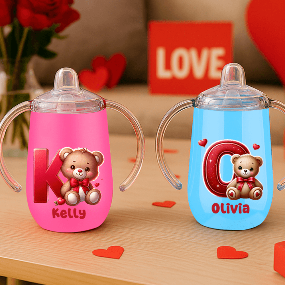 Cleverly combining adorable cartoon bears with heart motifs, this design can be customized with your child's initials and name, instantly capturing a toddler's attention. The cute patterns not only stimulate children's imaginations but also make drinking water a fun and interactive experience, helping cultivate good drinking habits from a young age.