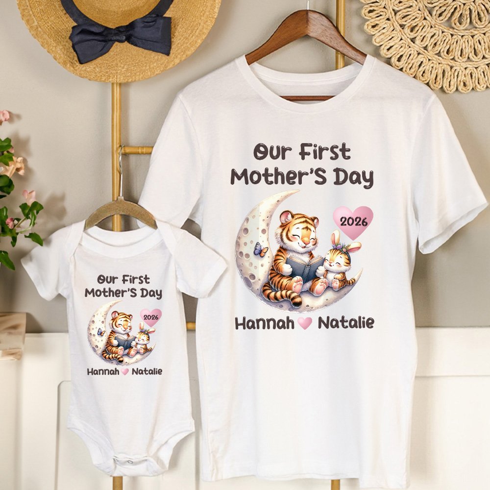 This matching set is the ultimate first Mother's Day gift. It's a beautiful way to commemorate this special occasion and celebrate the new mom's journey into motherhood. The coordinated look of the mom and baby in these shirts is charming and a symbol of their new family unit. It's a gift that combines style, sentimentality, and practicality. The new mom can wear it with pride, showing off her little one and their love, while the baby looks adorable in the matching bodysuit.