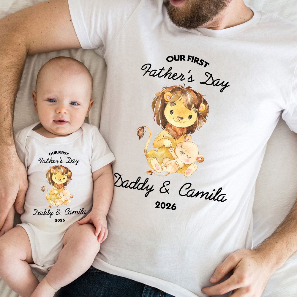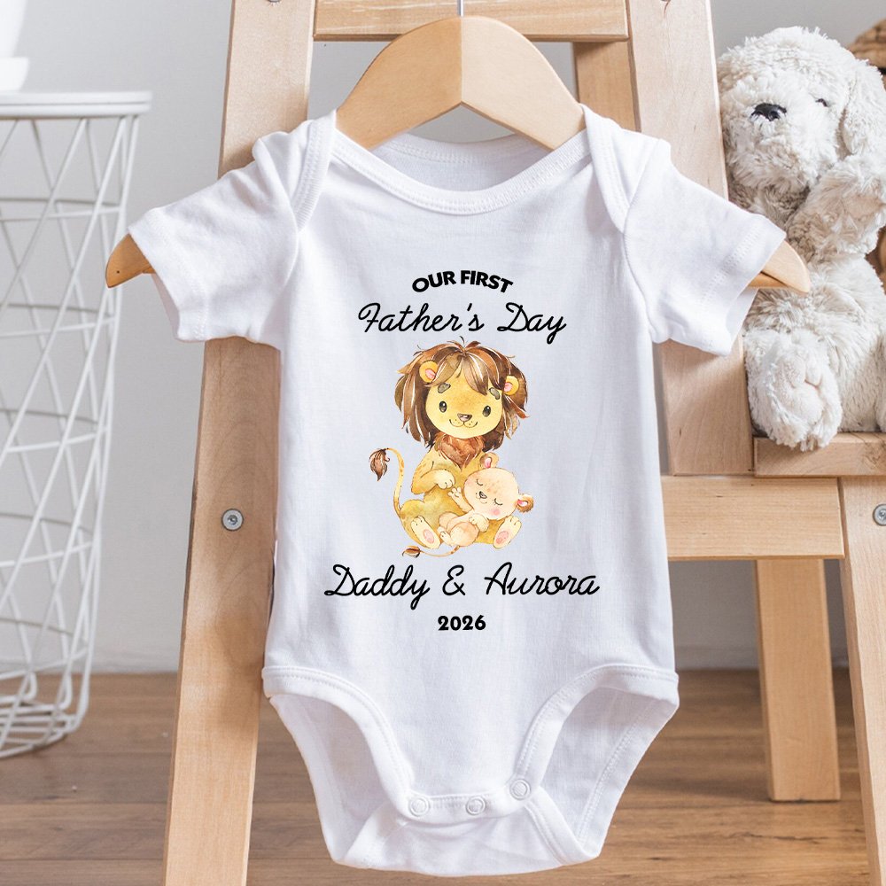 This clothing is inspired by the warm and lovely lion, symbolizing fatherly love as a mountain and protection as a king. The patterns of the father and the baby echo each other, which is childlike and meaningful. The baby's name and year can be customized to make this clothing a mark of family affection that belongs only to you.