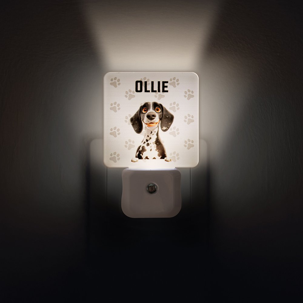 This LED plug-in night light features a charming cartoon pet design decorated with cute paws, highlighting adorable dogs in a playful and artistic style. The 3D design brings this cartoon dog to life, capturing the deep bond between you and your furry friend. You can customize 1-3 dogs and their names, making this LED night light more unique.
