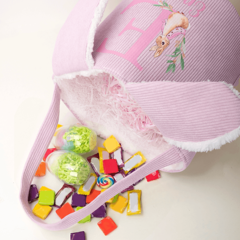 This adorable Easter basket showcases a playful bunny rabbit design with charming ears, perfect for the festive season. You can personalize it with a name and initials, and choose from five colors to match your little one’s style and make their Easter extra special.