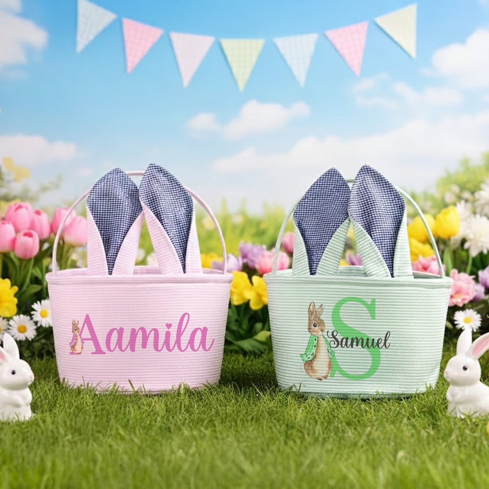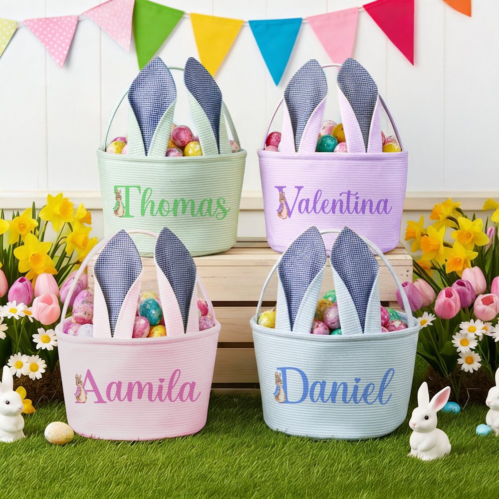 Make this Easter basket uniquely your child’s: pick from 4 cheerful colors, choose Peter Rabbit patterns, then add a custom name — turning a basic Easter container into a personalized treasure that feels made just for them.