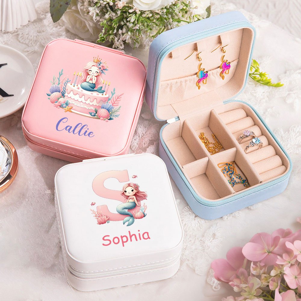 Make every little princess's jewelry collection magical with this customizable mermaid-themed jewelry box! It can be personalized with your choice of an initial, a number, or a birthday cake pattern in mermaid style and with your child's name, creating a unique piece that reflects your child's personality.