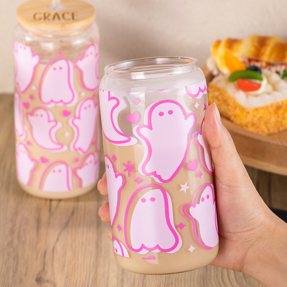 This glass is themed with a cute pink ghost, which is full of cuteness. There are five fonts to choose from, and you can also customize the name, making this cup a unique and eye-catching presence for Halloween.