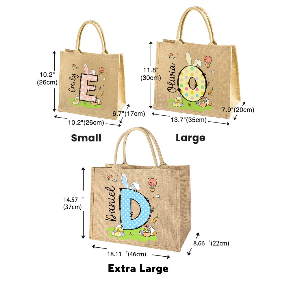 Personalized Cute Polka Dot Easter Egg Bunny Ear Initial Jute Tote Bag with Name Easter Party Favor Gift for Kids