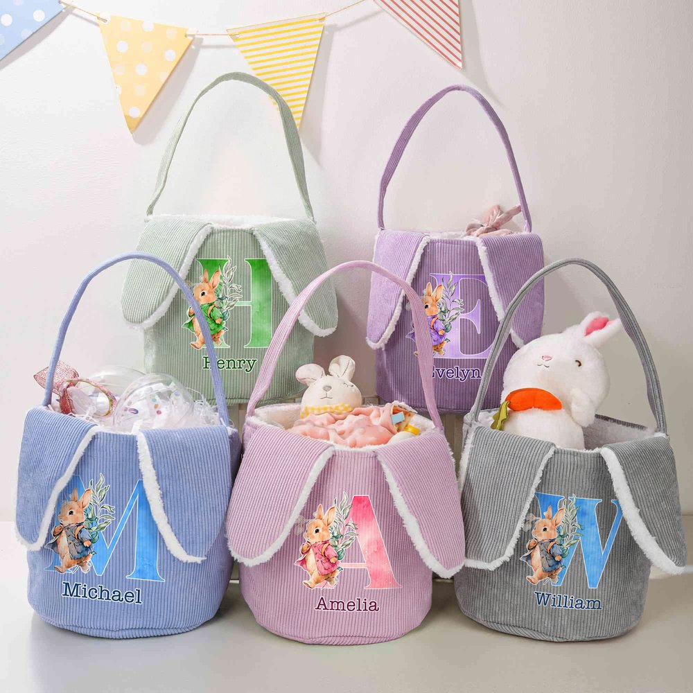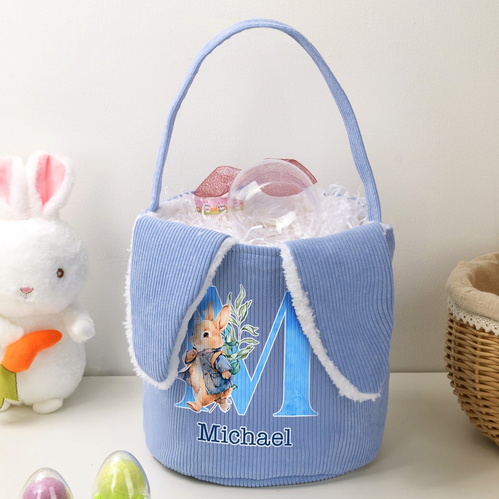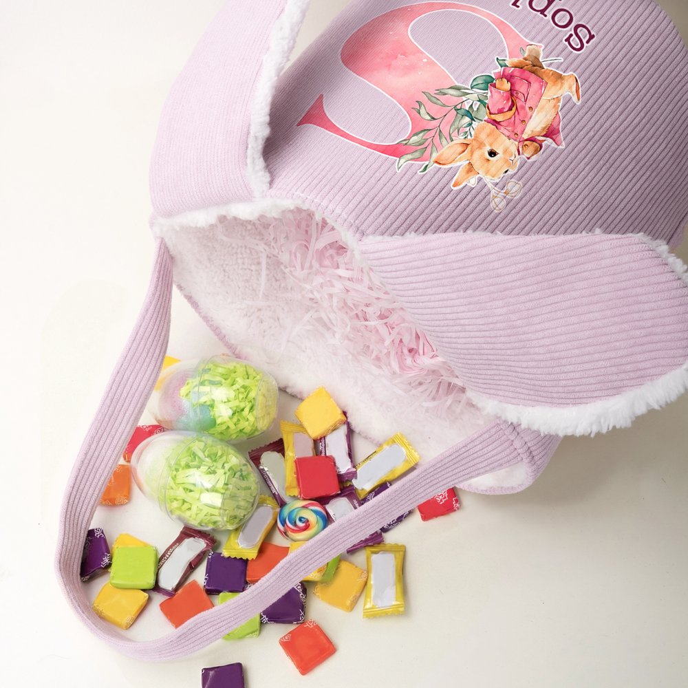 Printed with a fresh and soothing watercolor rabbit pattern, this basket is soft, cute, and heartwarming. It can also be customized with your child's name, making each basket unique and brimming with festive spirit. It's both aesthetically pleasing and personalized.