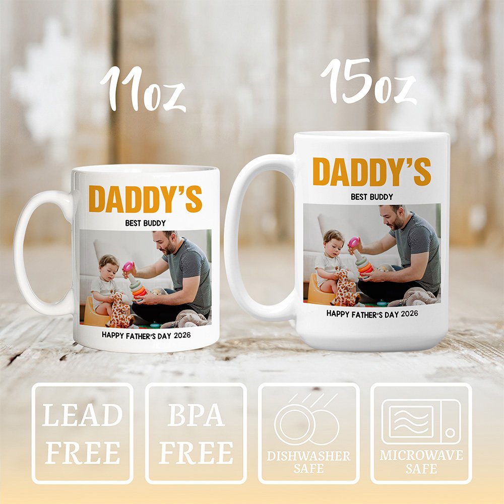 This personalized custom coffee mug is available in two sizes and seven nicknames and can be customized with a photo, name, and personal message, making it a unique keepsake that carries warm memories between family members.