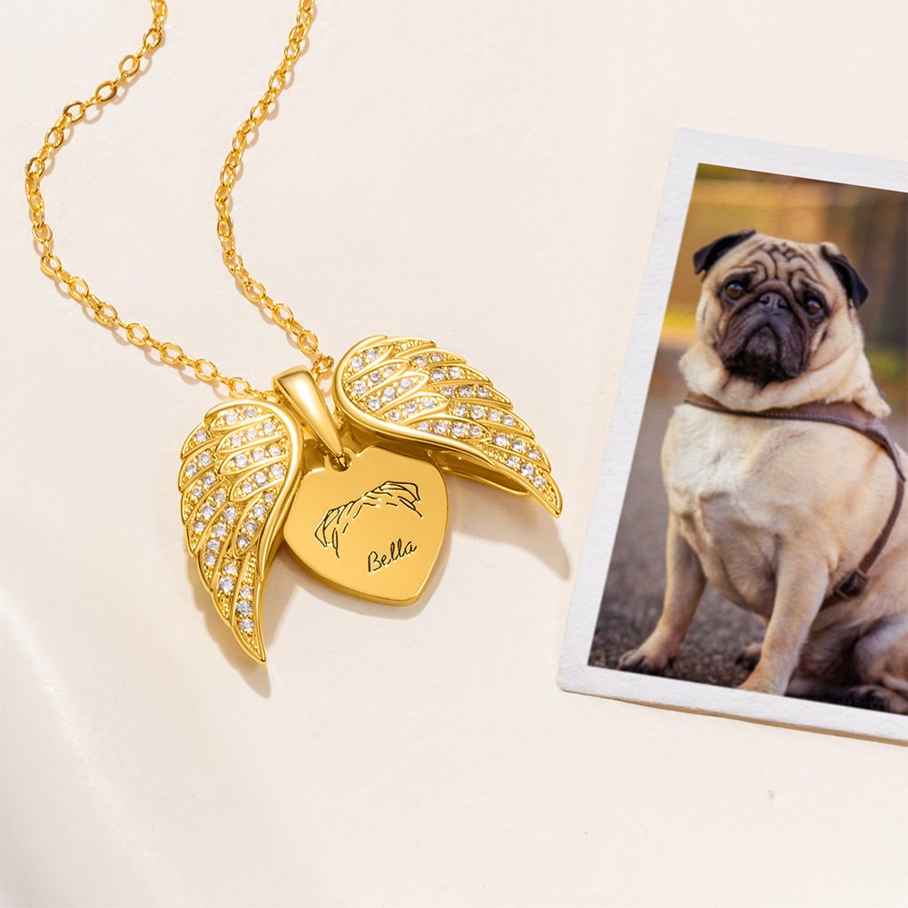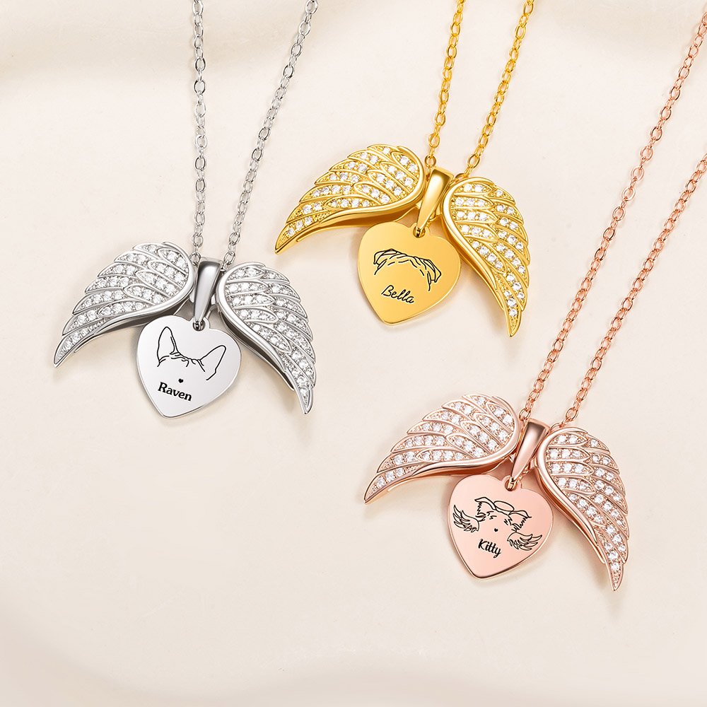 The design is inspired by the gentle outline of angel wings and pet ears, which are combined into a heart-shaped pendant, implying that the pet is still guarding the owner's heart in heaven. We provide three design styles: simple lines, heart-shaped nose, and angel wings. You can also engrave the pet's name in the center of the pendant for exclusive customization and full of affection.