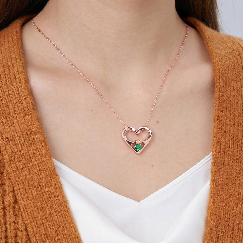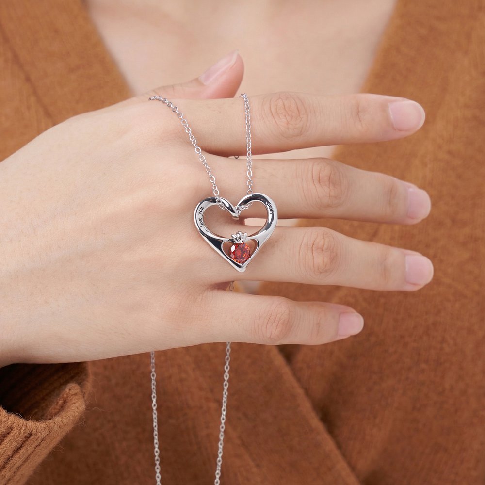 This necklace features a simple yet elegant heart-shaped pendant, symbolizing eternal love and companionship. At its center, a birthstone can be selected by month, adding a personalized touch of meaning. On both sides of the pendant, custom text can be engraved—hiding your cherished memories and heartfelt words in every detail.
