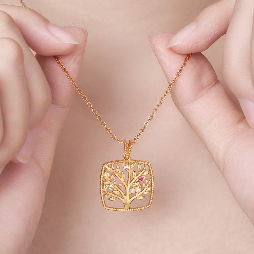 Inspired by a family tree, this necklace combines emotional expression, symbolizing reunion, blessings, and hope. The necklace supports customization of 1-8 corresponding birthstones, giving unique meaning to each family member or particular person.