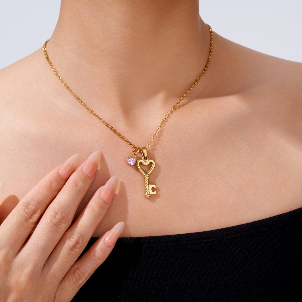 | Feature: | Durability, Easy to Care, Heart Key with Birthstone and Initial Design |