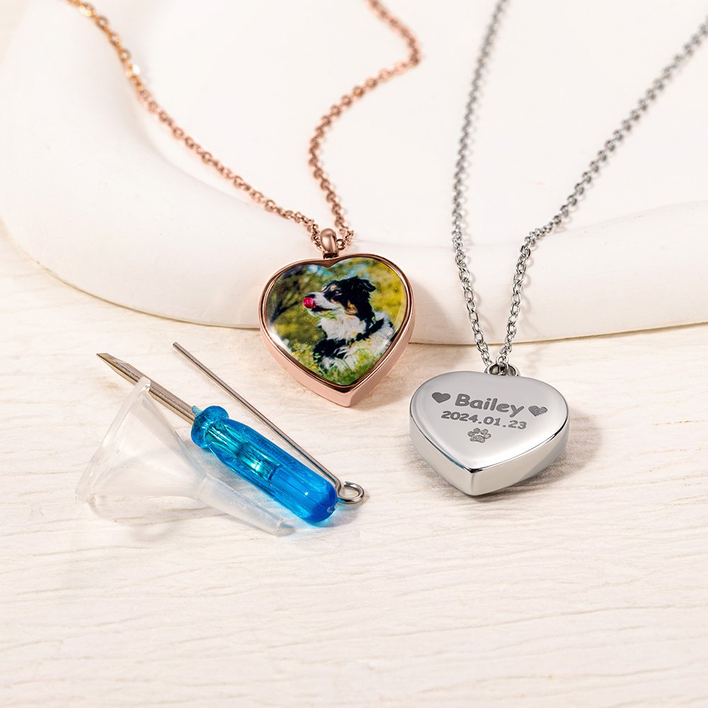 Made of high-quality stainless steel material to ensure its durability and long-term preservation. The opening and closing design of the necklace is precise, which can safely store your pet's ashes or other souvenirs, and it is convenient for you to open and close at any time. In addition, we also include a complimentary loading tool to ensure your convenience and safety during use.