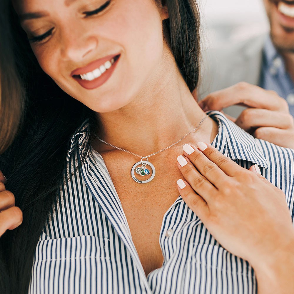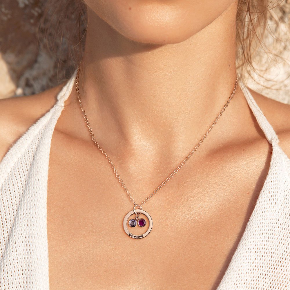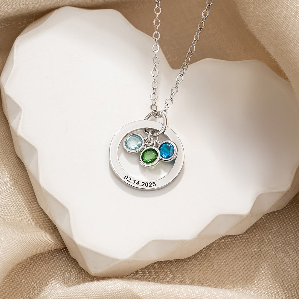 The pendant part of this necklace consists of a delicate ring and multiple customizable birthstones, each of which represents a special person or precious moment. The customizable text on the ring makes the necklace a unique emotional carrier to meet the emotional expression needs of different groups of people.