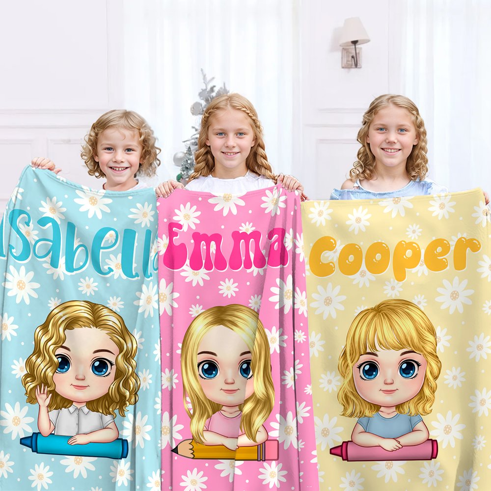 This blanket combines cartoon characters with a refreshing daisy pattern, and can be customized with a name, creating a playful design. The bright and vibrant colors instantly capture children's attention, making it a unique "cartoon companion" in their eyes. It combines decorative and exclusive elements, perfectly suiting children's aesthetic preferences.