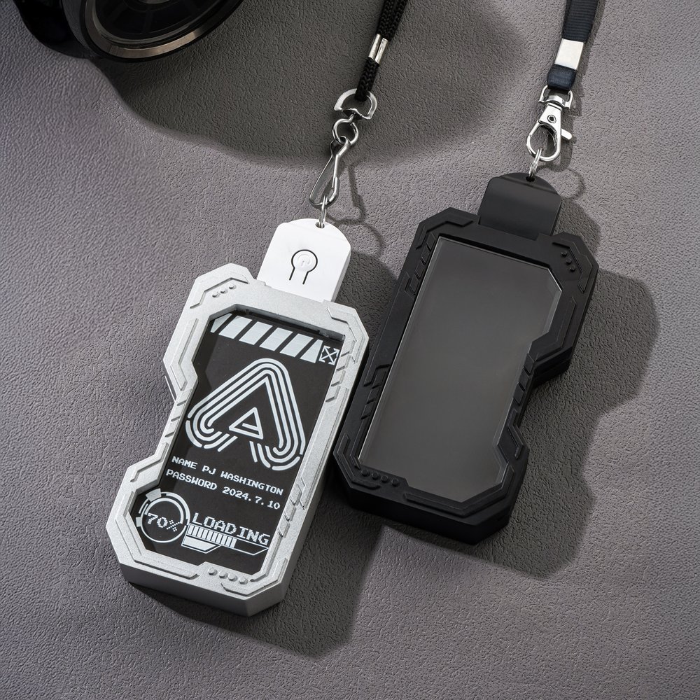 Boasts a mechanical industrial aesthetic with two trendy themes: "LOADING" and "404 NOT FOUND." Black and silver exteriors enhance technological appeal, while customizable names, passwords, and initial logos enable personal expression. Round cord or lobster clasp lanyard options are suitable for campus commutes and daily use.