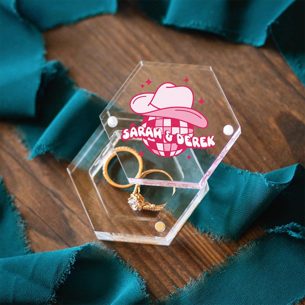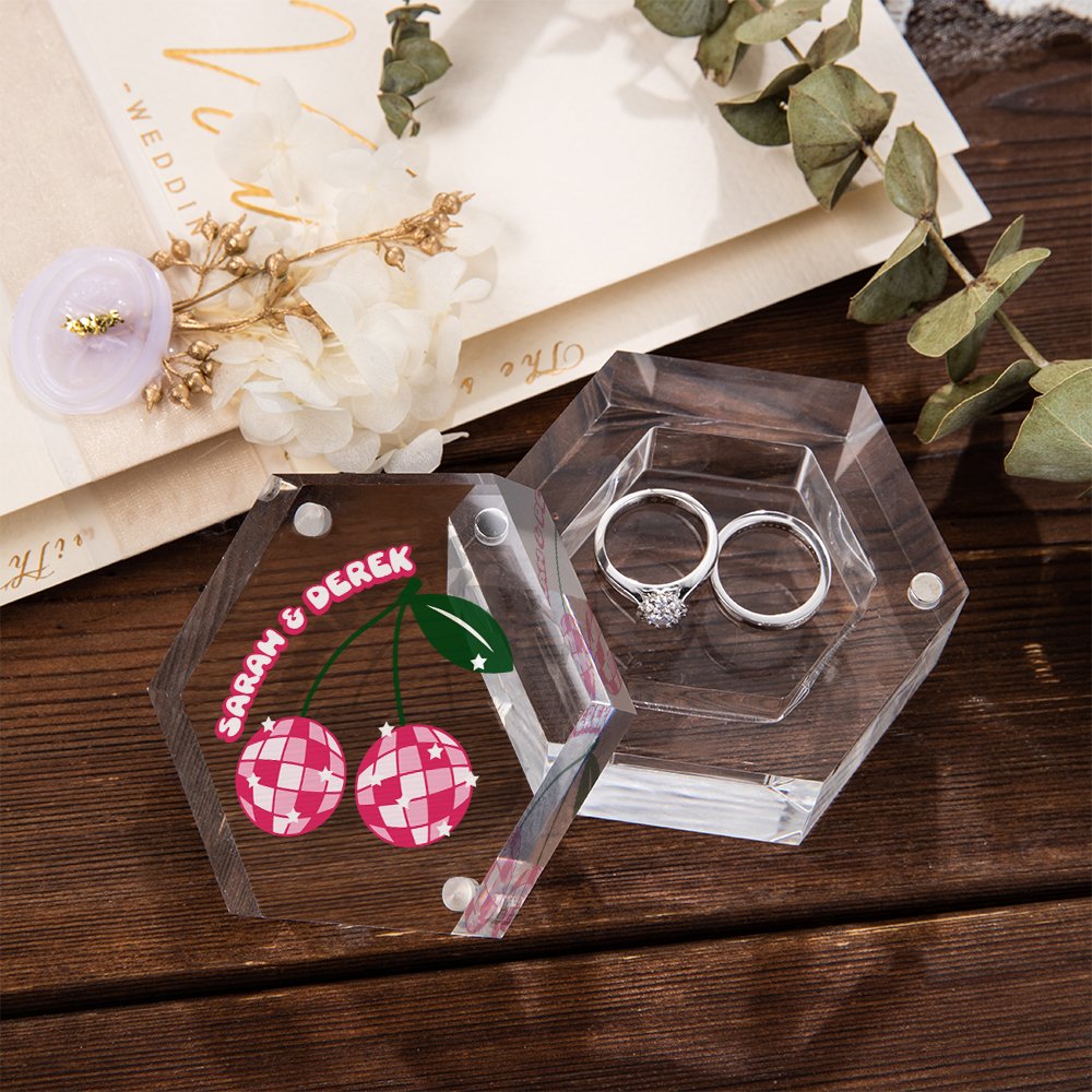 Different from the traditional velvet ring box, our ring boxes are made of high transparent acrylic, it shines like a diamond in the sunlight which symbolizes pure and forever love. The surface of our acrylic ring box is engraved with romantic words and decorated with different cute patterns, bringing a pleasant visual effect.