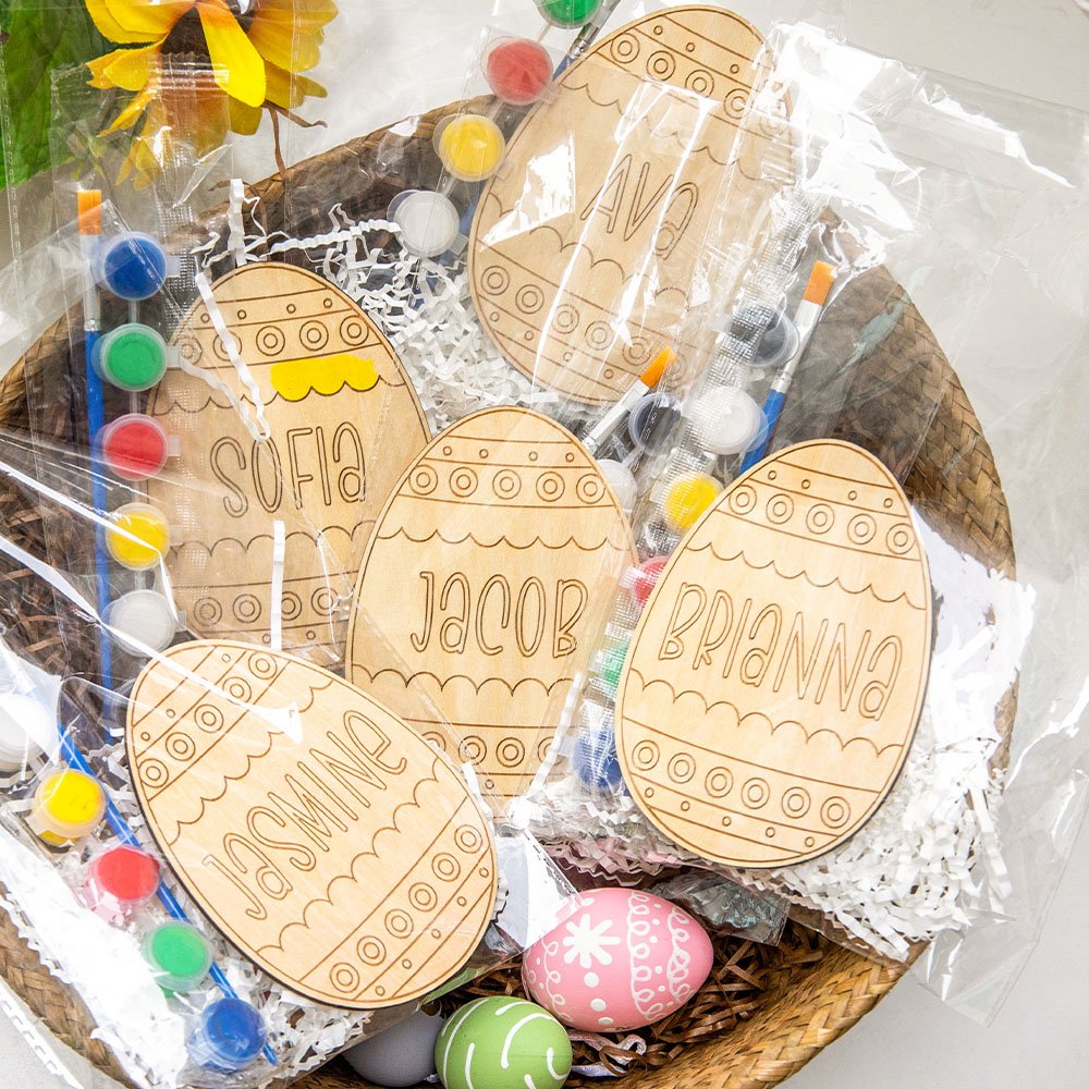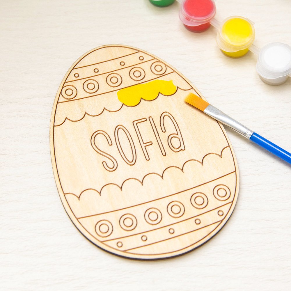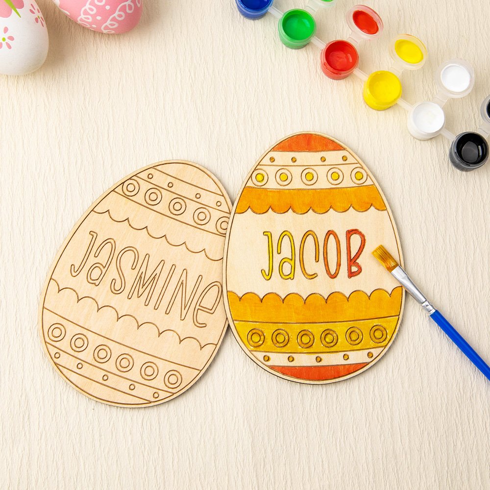 The set includes wooden eggs, brushes, and 6 vibrant colors, providing everything kids need to unleash their creativity. They can paint the eggs in various colors, making each egg a unique masterpiece. And you can customize it with their name to make it a truly special and unique creative experience.