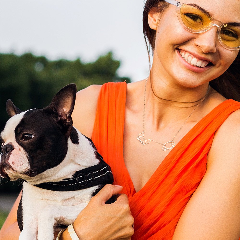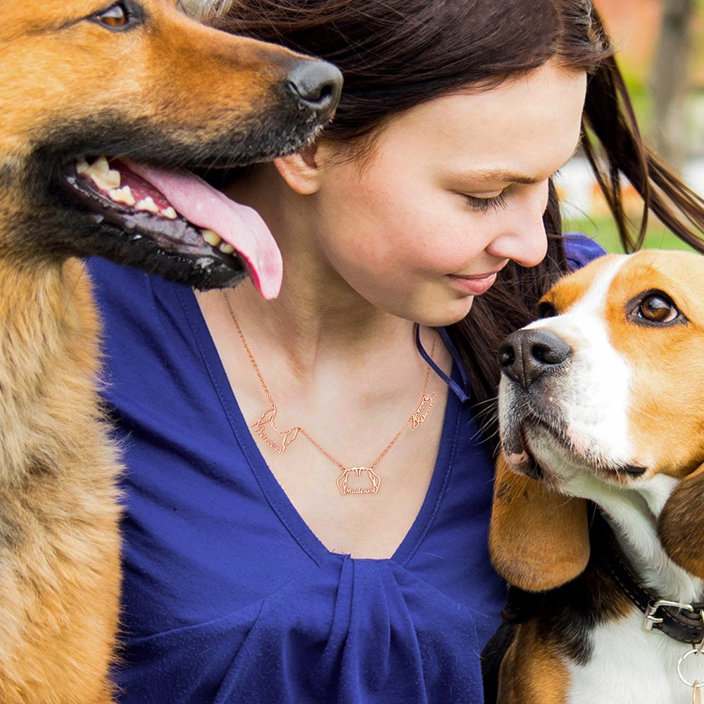This necklace features a delicate pendant in the shape of your pet's ears. There are about 124 breeds of dog for you to choose from, and you can customize 2-4 dog ear pendants.Β