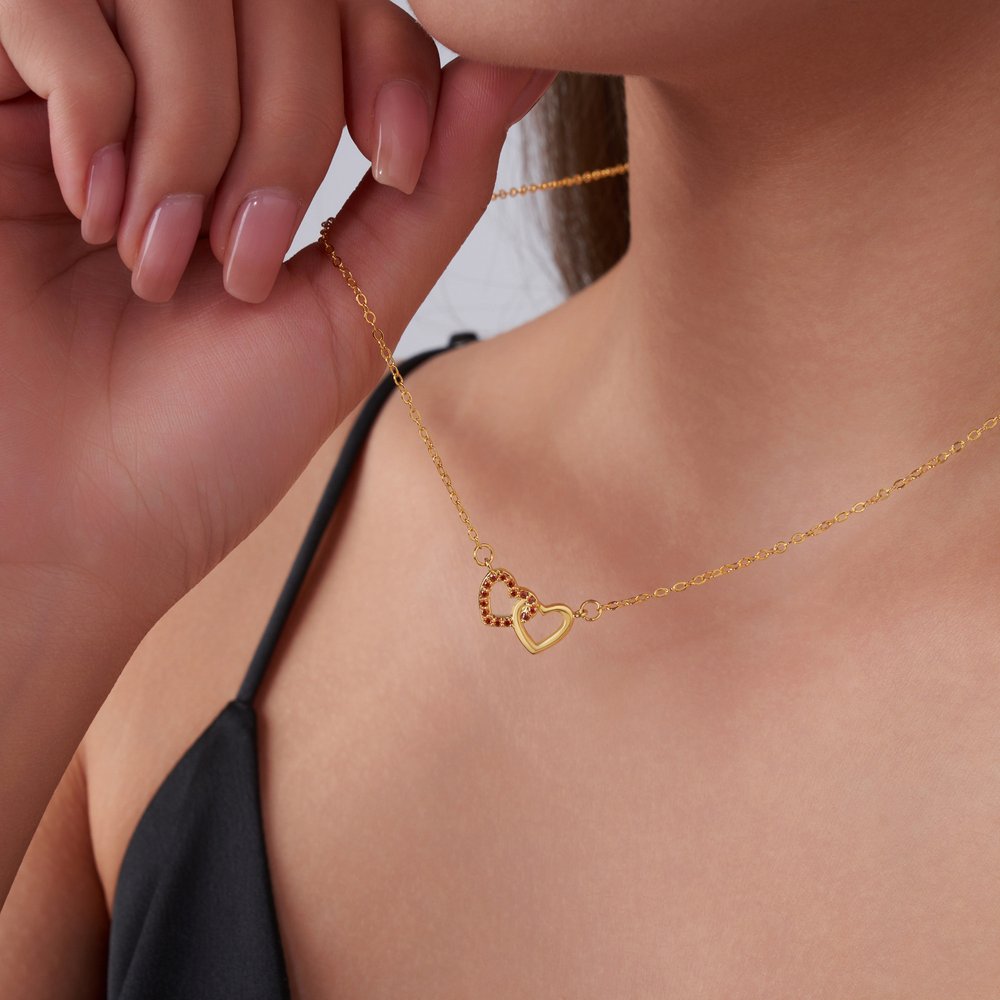 An exquisite fusion of minimalist design and heartfelt sentiment, this Double Heart Infinity Birthstone Necklace makes an ideal gift for any special woman in your life. The elegant piece features a beautifully crafted infinity symbol intertwined with hearts, representing eternal love and connection. To make it truly unique, you can select the birthstone on the left heart to represent the recipient's birth month—adding a deeply personal touch that transforms this necklace into a timeless keepsake celebrating your unbreakable bond.