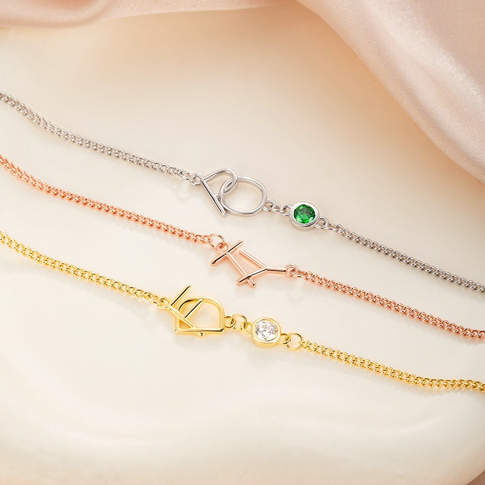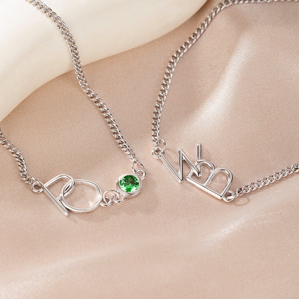 This bracelet is based on a minimalist style, combining interlocking initials with a delicate chain to create low-key yet meaningful personalized jewelry. The two initials are closely connected, symbolizing the inseparable emotional bond between the two sides, being both fashionable and rich in profound meaning. You can also choose to customize the birthstone on the bracelet to make it more special.