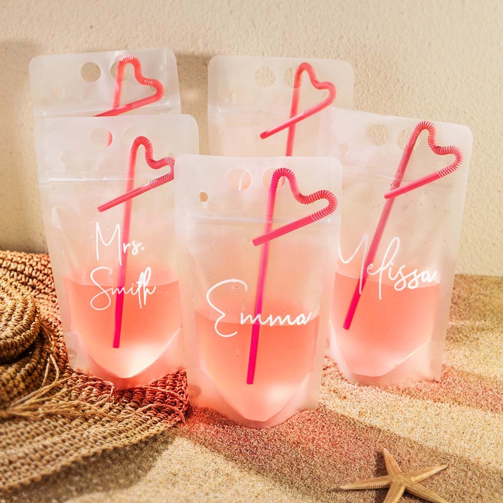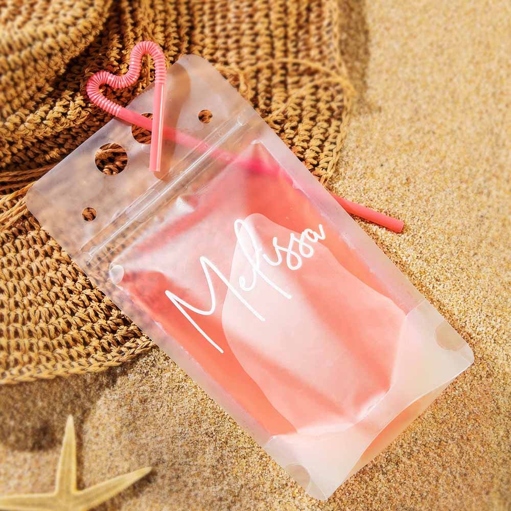• Bachelorette Party Favors: The drink pouches are perfect for bachelorette parties and party favors by the pool or on the beach. Add customized names to each pouch so everyone knows which drink is theirs.
