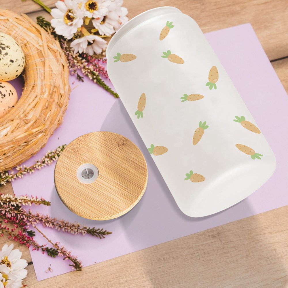 The adorable carrot pattern of the frosted can glasses perfectly captures the spirit of Easter. Its vibrant colors and playful design add a festive touch to the Easter celebration.