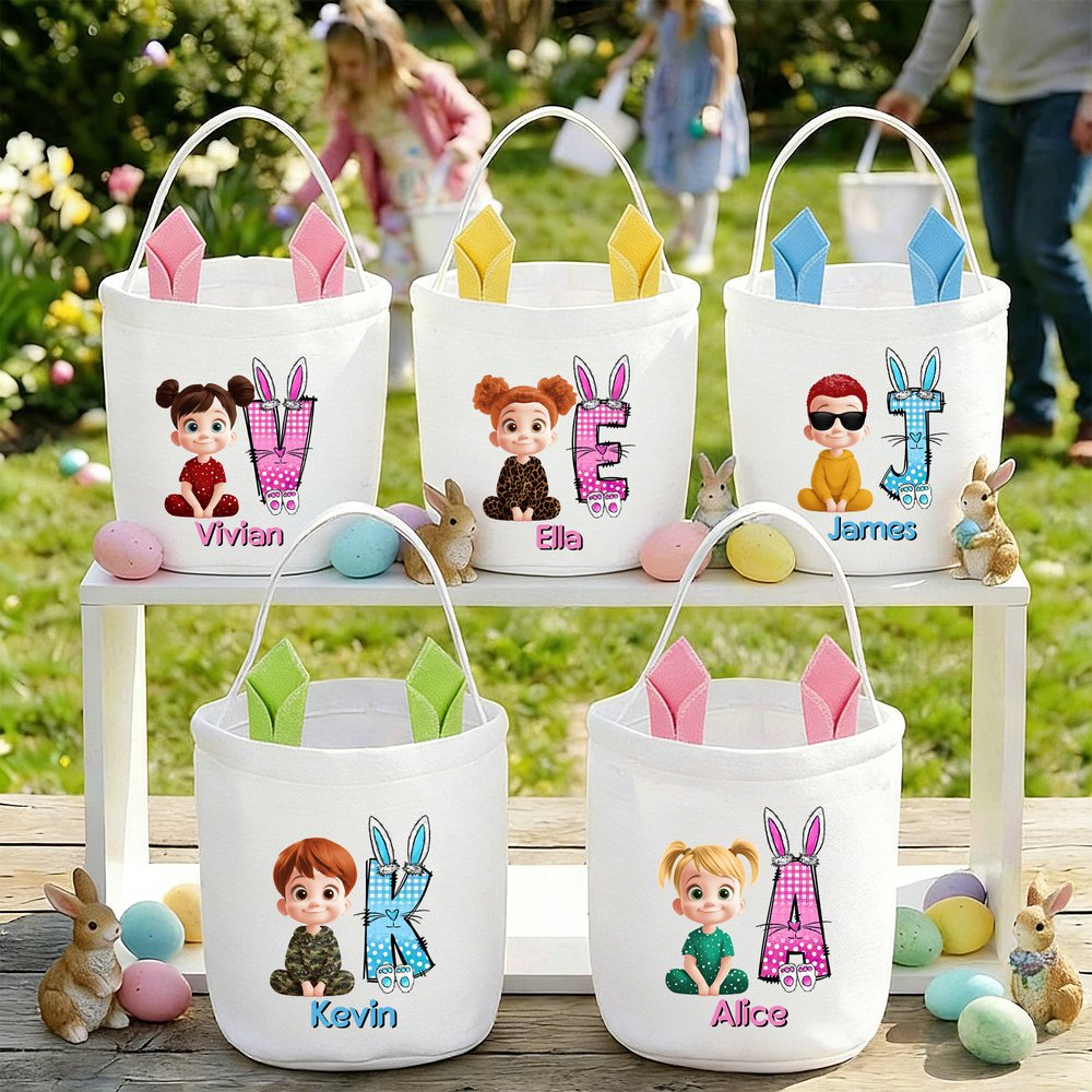 Using adorable cartoon characters as the core element, paired with Easter eggs, the names and initials are designed for a playful and lively style, precisely targeting children's preferences. This makes the basket not just a storage container, but also an eye-catching prop for Easter egg hunts, filled with a festive atmosphere.