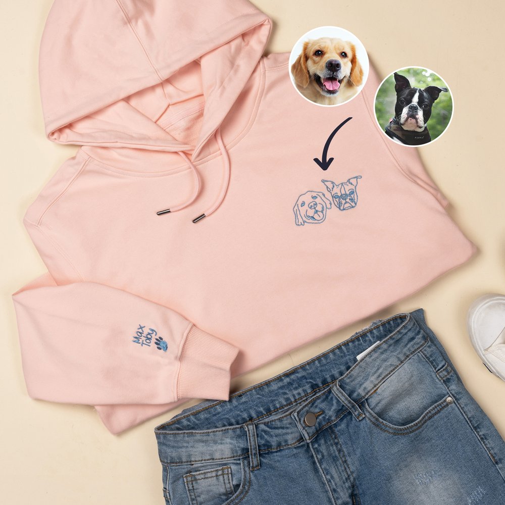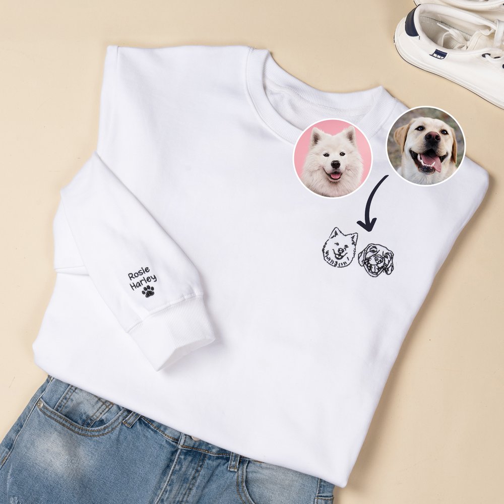 Upload a photo of 1-2 pets for custom embroidery, including your or your pet's name. Perfectly blend your furry friends' adorable looks with their unique touches. Whether it's a lively dog, a docile cat, or any other adorable pet, the delicate lines capture their lively expressions, creating a unique connection between you and your pet that showcases your cherishment and love for your furry companion.