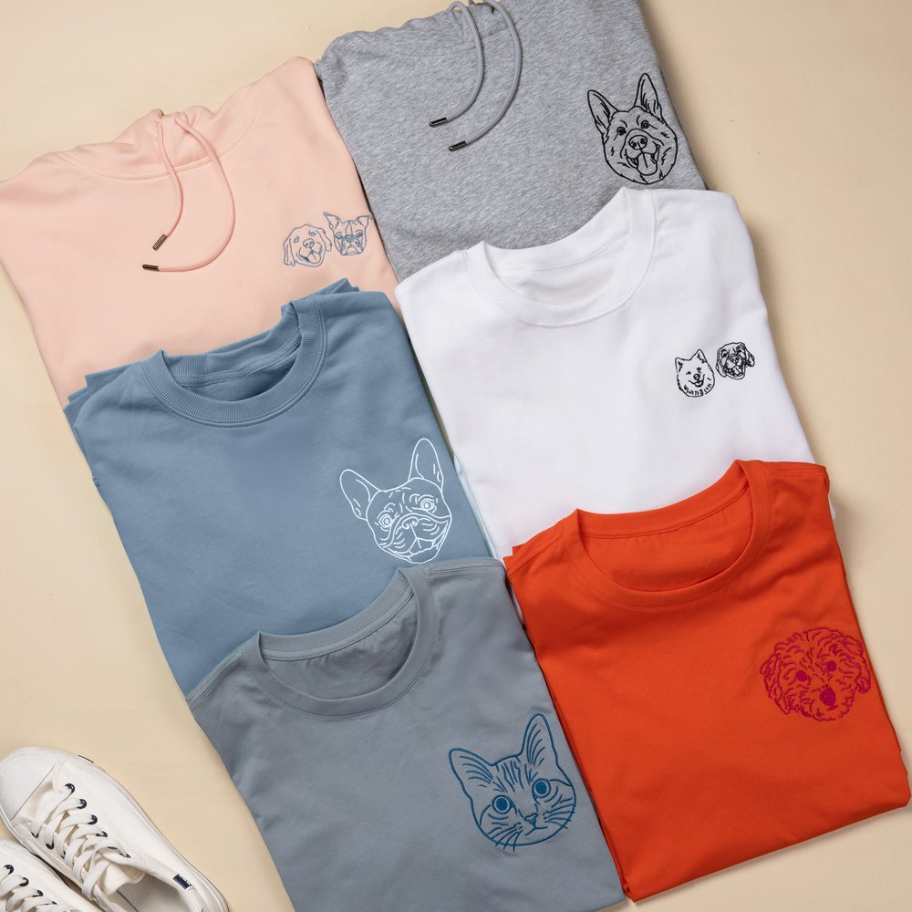 Comes in three basic styles: a classic T-shirt, a sweatshirt, and a Hoodie, all available in a variety of solid colors, making it easy to adapt to any season. Simple and elegant for everyday commuting, comfortable and effortless at home, and a unique touch for outings or pet get-togethers. Whether worn alone or layered, this stylish and versatile piece brings the companionship of your furry friend to any occasion.