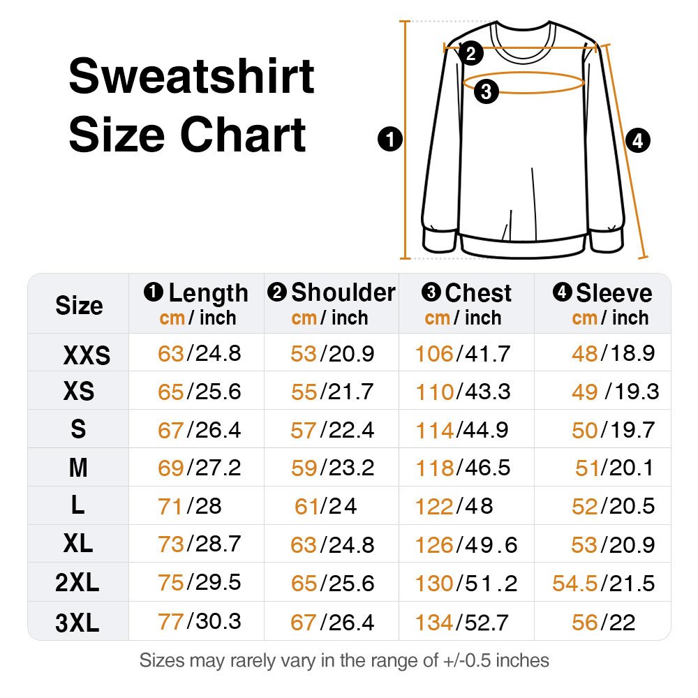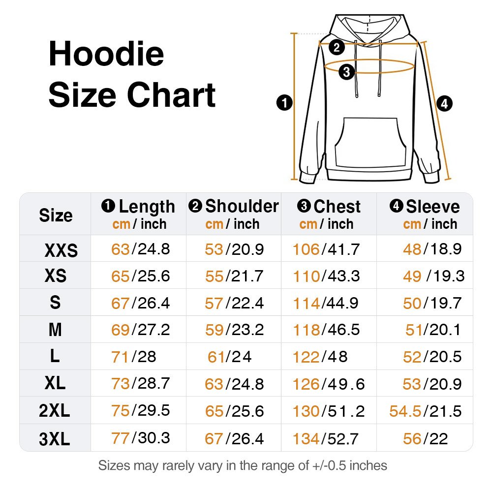 | Measurement: | T-shirt - XXS, XS, S, M, L, XL, 2XL, 3XL, 4XL, 5XL Sweatshirt - XXS, XS, S, M, L, XL, 2XL, 3XL Hoodie - XXS, XS, S, M, L, XL, XXL, 3XL |