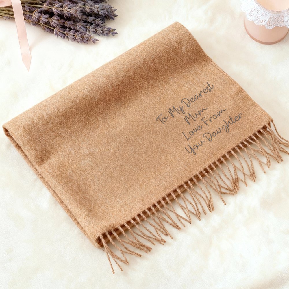 This scarf features a text embroidery design that allows you to customize it with names, special dates, or messages, giving it a unique meaning. This personalized touch not only reflects your individual style but also conveys deep emotional significance. Whether for yourself or as a gift, it demonstrates thoughtful care, making each user feel special.