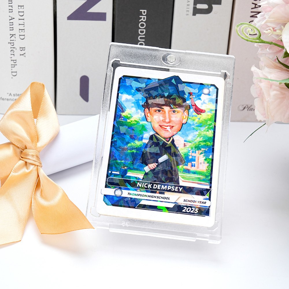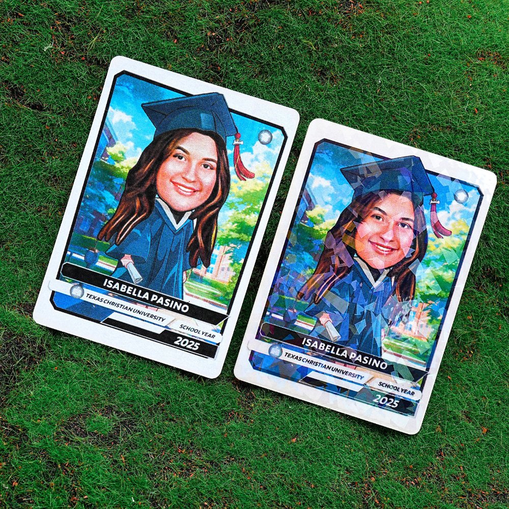 Use this creative card to add a unique touch to the special moments of graduates. The card design incorporates the American anime style, making each card full of personality and vitality. Whether uploading a precious photo or writing down the name, school, or year, this card can become a unique souvenir that records the story.