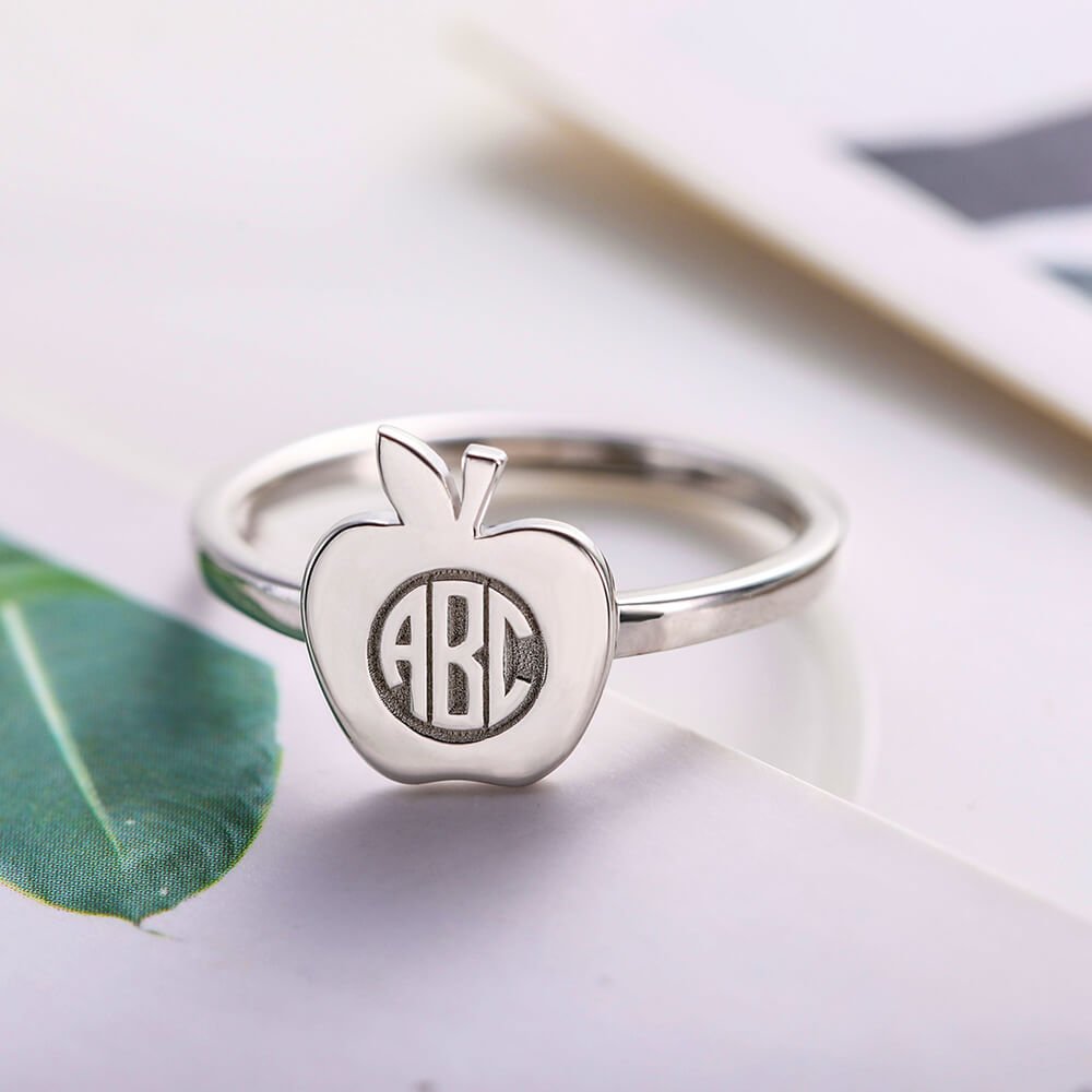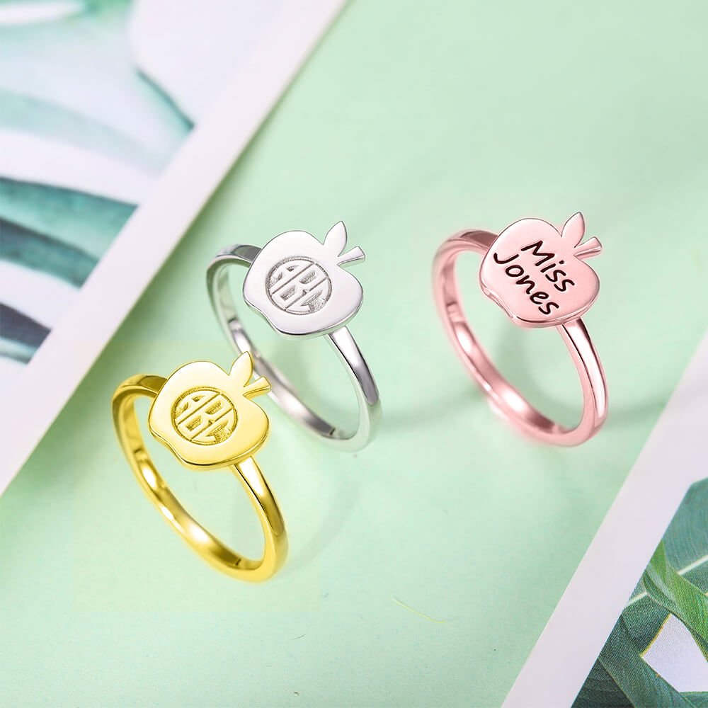 •Callie offers you this meaningful apple ring engraved with initials or names. For any significant relationship made up you and your teacher, this ring is a meaningful witness. Apple is the best way to show your respect to your teacher as the tradition. Or as a cute gift for the people love sweet fruits like an apple.