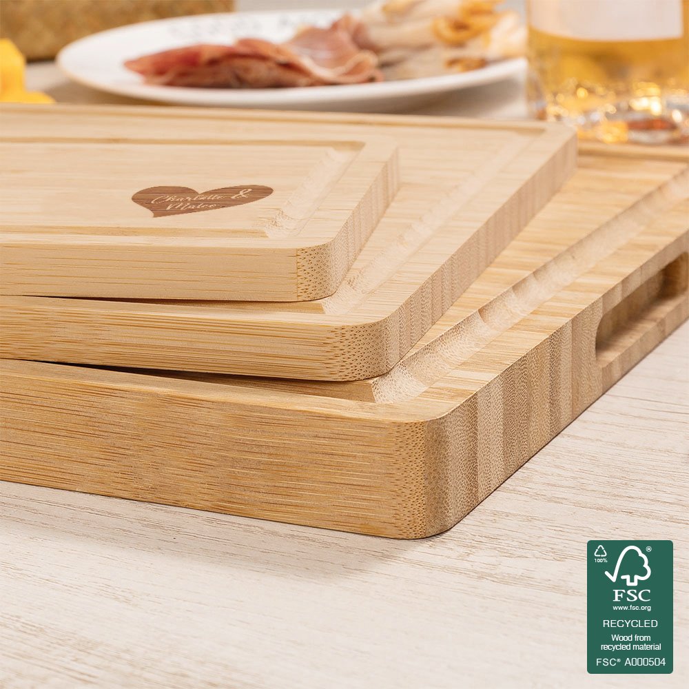 This cutting board is made of FSC-certified bamboo wood material, reflecting our commitment to environmental sustainability and ensuring that your purchase meets quality and sustainability standards. Exquisite craftsmanship makes this cutting board extremely durable and sturdy. After careful polishing, it is very smooth and very flat without any burrs, cracks, chips, etc.