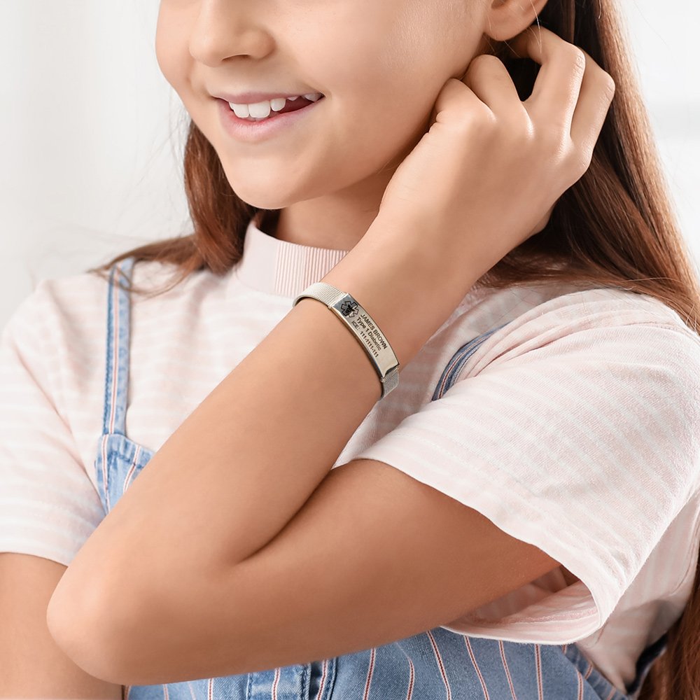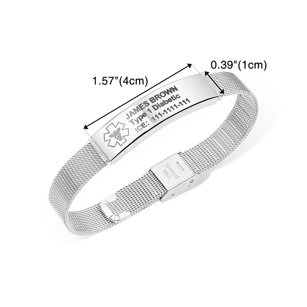 This bracelet uses classic gold and platinum finishes to add a subtle luster to your wrist. You can customize it according to the actual situation, such as allergies, chronic diseases, emergency contact information, etc., to ensure that emergency personnel can always get important information in the event of a real medical accident.