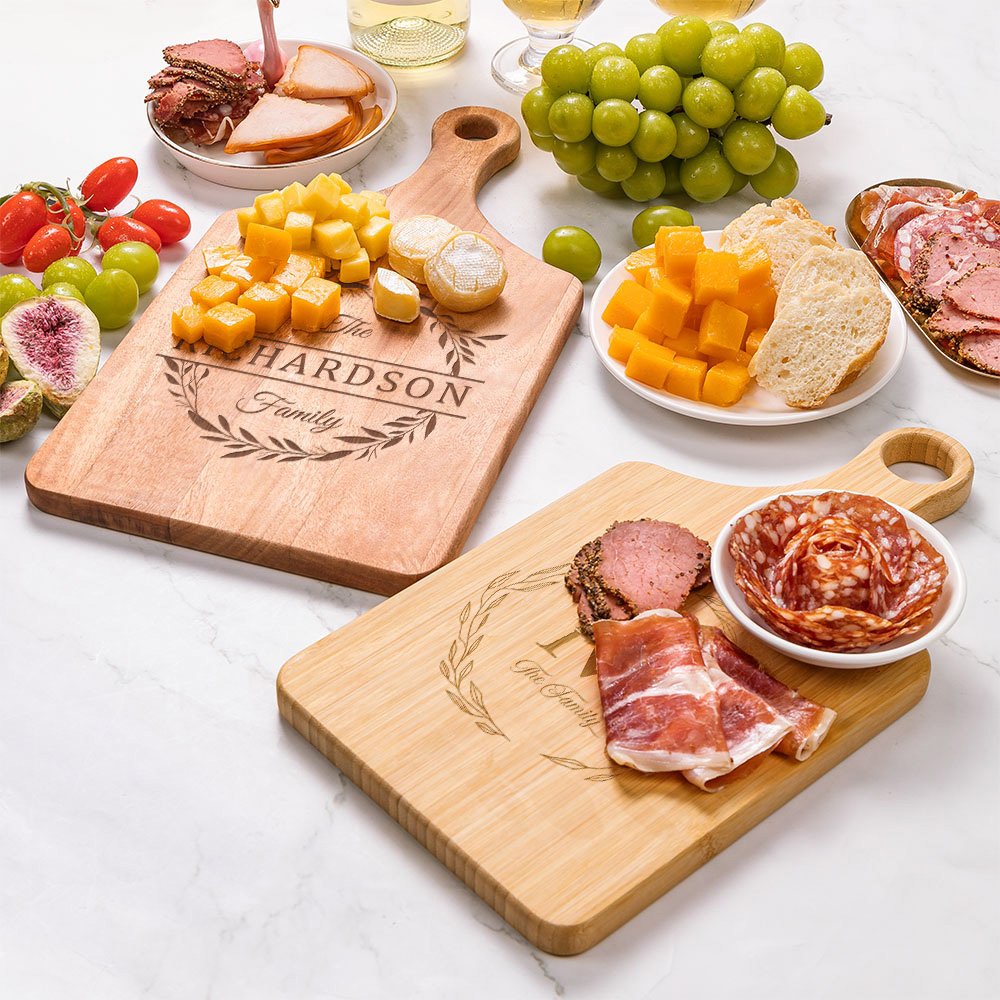 This cutting board combines exquisite carving craftsmanship with personalized design. The engraving of letters and names on the leaf edge makes each cutting board unique, giving the kitchen more warmth and style. There are 3 customized styles to choose from, which show the taste of exquisite life. Whether it is for personal use or as a gift, it can become a beautiful landscape.