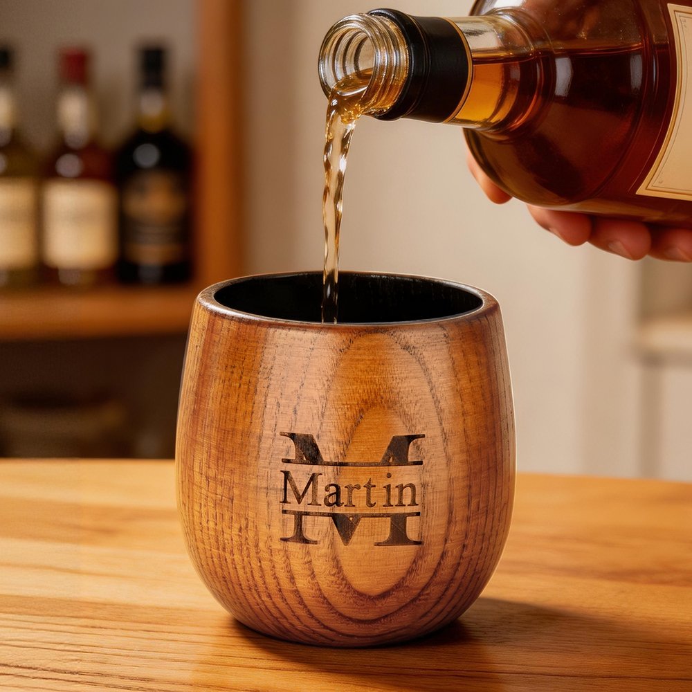Rooted in the natural wood, this whiskey glass seamlessly blends vintage charm with personalized expression through custom monogram initials or name engraving. Far more than a drinking vessel, it stands as a bespoke identity marker crafted exclusively for you.