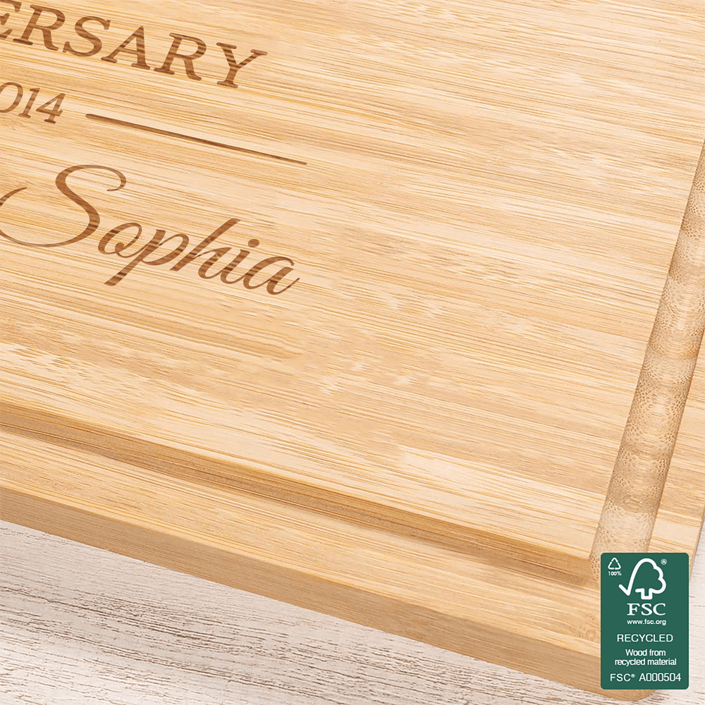 This cutting board features personalized engraving that allows you to etch your beloved's name, anniversary number, and year, creating a unique and timeless piece. Whether as a kitchen decoration or a practical tool, this cutting board showcases a distinctive personal style, becoming a proud centerpiece for any chef.