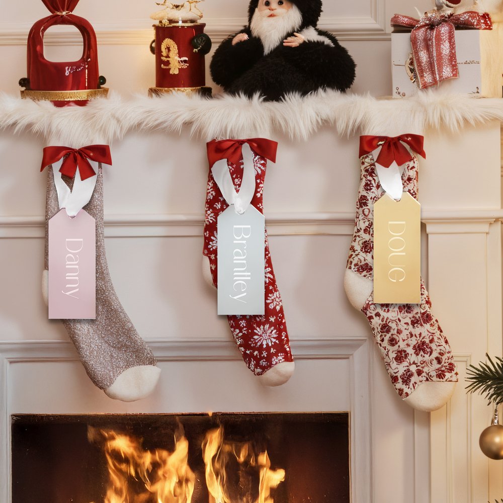 These tags feature a classic gift label style, allowing each tag to be engraved with names in either cursive or printed fonts, showcasing individuality and thoughtfulness. The meticulously designed tags not only enhance the uniqueness of the socks but also create a rich festive atmosphere, making each family member feel special and loved.