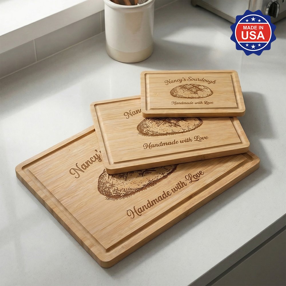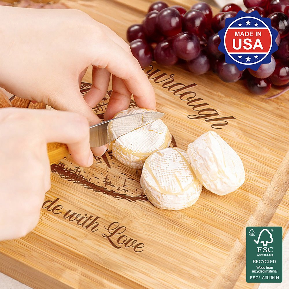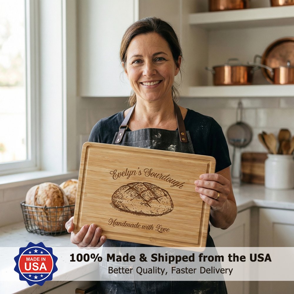 | Feature: | 100% American Made Product, Durable, Smooth Surface, Easy to Clean, Built-In Groove, Versatile Use, Sourdough Design, Handmade with Love Design |