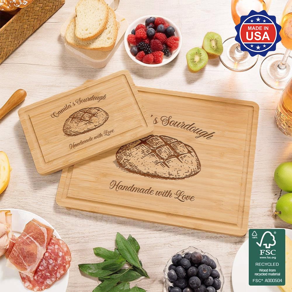 | Feature: | 100% American Made Product, Durable, Smooth Surface, Easy to Clean, Built-In Groove, Versatile Use, Sourdough Design, Handmade with Love Design |