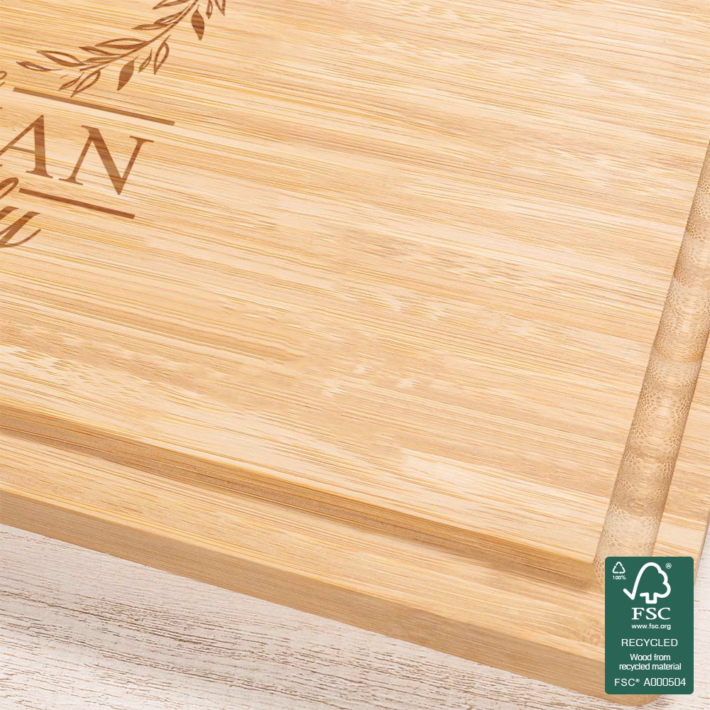 Made of premium bamboo materials with FSC certification, the cutting board is not only eco-friendly but also has natural antibacterial properties. Exquisite craftsmanship makes this cutting board extremely durable and sturdy. After careful polishing, it is very smooth and very flat without any burrs, cracks, chips, etc.