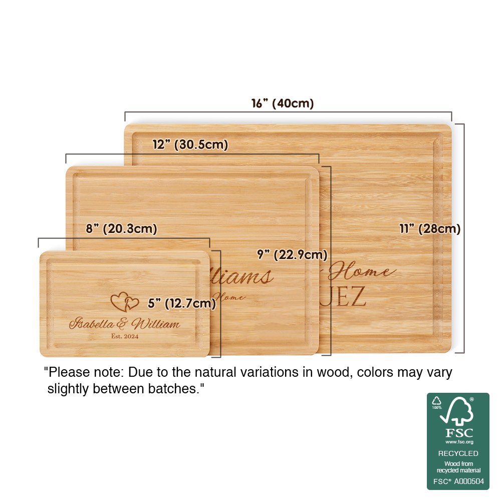 This cutting board is unique in that it can be engraved with the name or text. With four styles to choose from, combined with its natural and original bamboo grain, it makes a one-of-a-kind kitchen accessory. In addition, it has three different size options, suitable for different scenarios, making it a perfect gift for family, friends, and cooking enthusiasts; whether it is a wedding, party, housewarming, Christmas, or any other time, it can add a personalized touch to their kitchen.