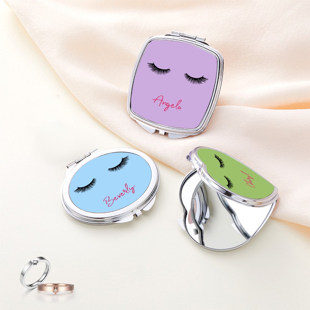 This small folding mirror is decorated with a playful and artistic eyelash pattern, which perfectly interprets the feminine beauty and fun of women. You can also choose to add your name on the mirror, which looks like a mouth, and with the eyelashes, the whole picture is a face design, which is very unique and creative.