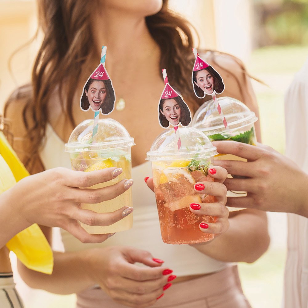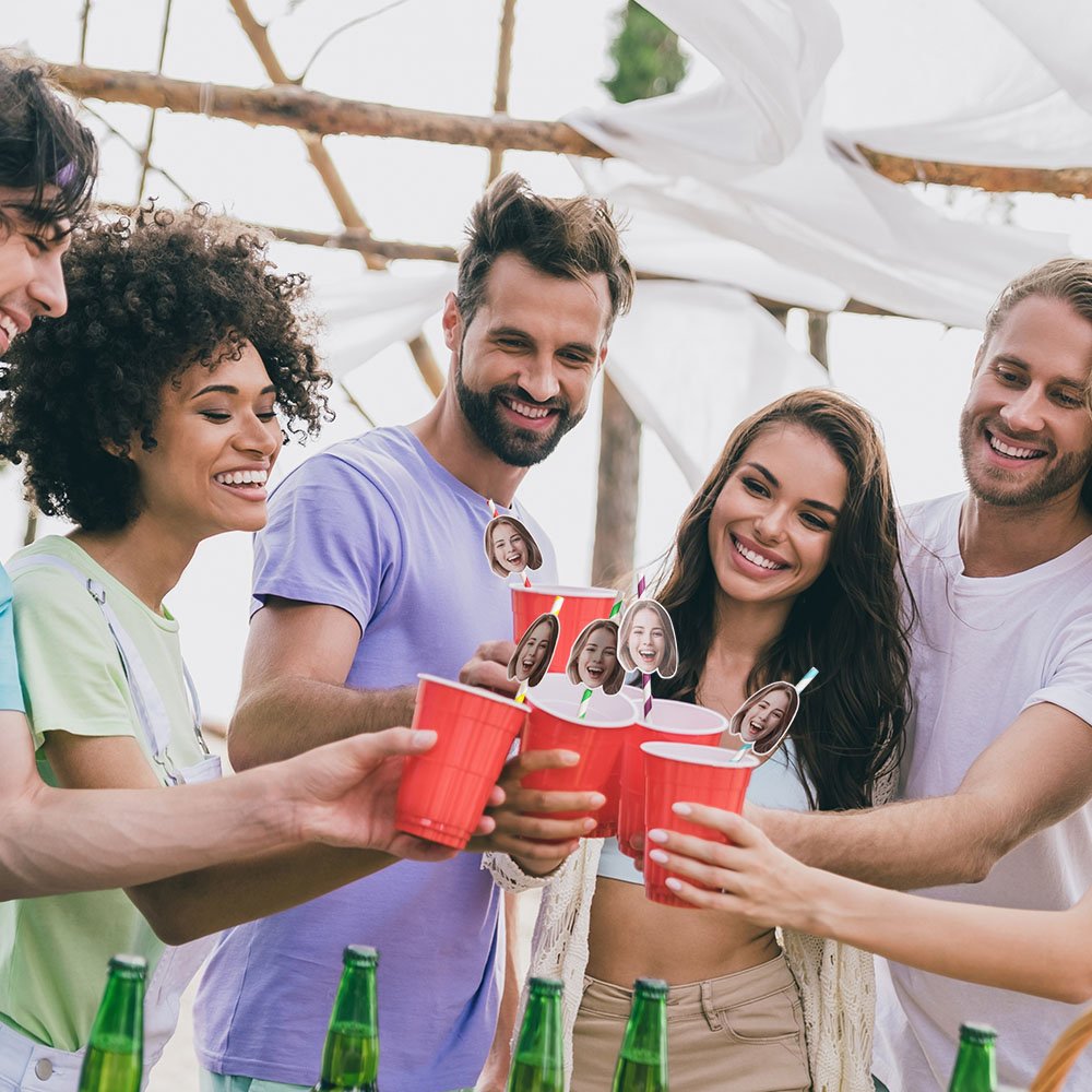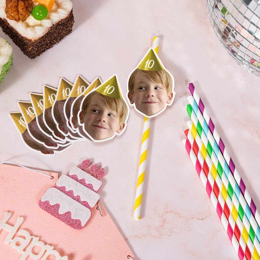 The unique design allows you to add a personal touch to any celebration. Each straw features a big head cutout of a face, which can be customized with the photo of your choice. This means that whether it's for any special occasion, you can have the face of the guest of honor or a group of friends prominently displayed on the straws.